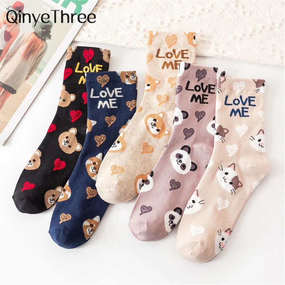 Cute Animal Korean Style Women Cat Panda Dog Bear Cartoon Socks Soft Cotton Casual Sport Streetwear Dropship