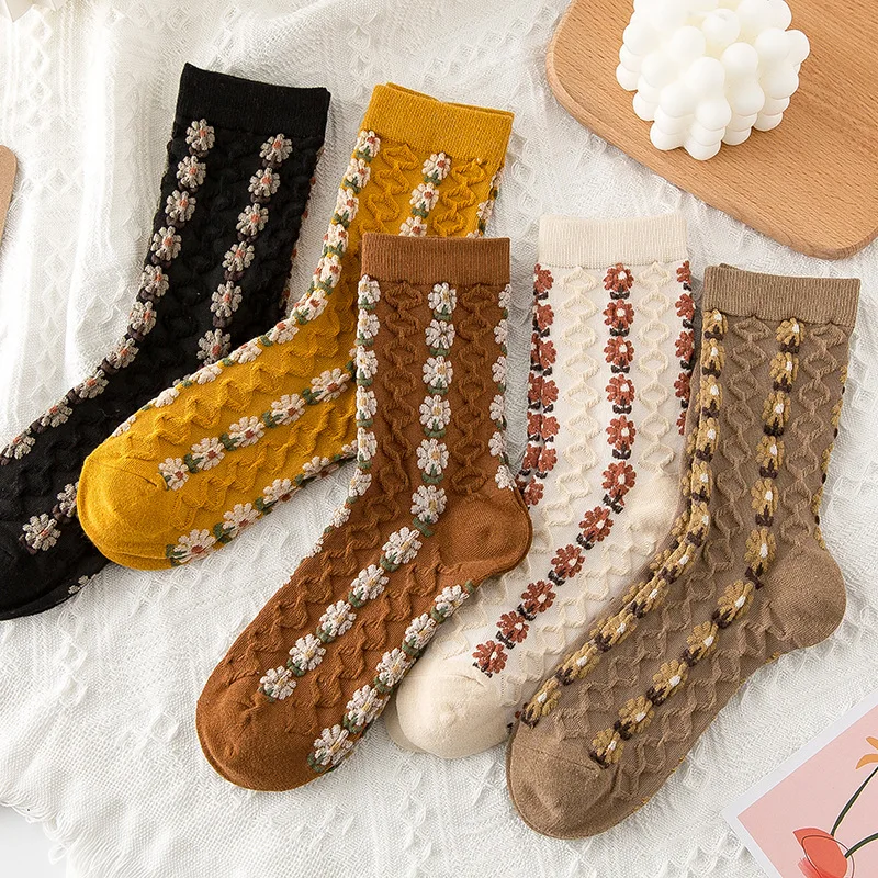 Fashion Harajuku Retro Woman Floral Vintage Socks Novelty Ethnic Print Kawaii Cute Cotton Casual Breathable Ladies Girls Funny