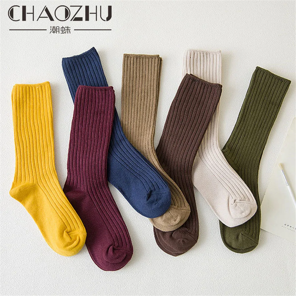 1 Pair Women Cotton Loose Socks Autumn Winter Knitting Solid Color Long Black Pink Korean Japanese Student Girls Stockings Retro  Read more