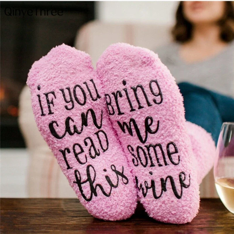 Dispensing Wine Printed Terry Cake Socks Girls Coral Fleece Women Thicken Warm Winter Soft Floor Non-Slip Socks Christmas Gift  Read more
