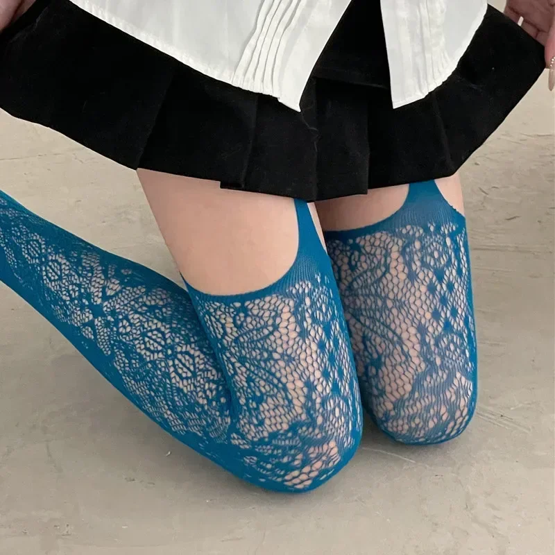 Sexy Women Sling Back Fishnet Stockings Lace Flower Suspenders Pantyhose Vintage Leggings Tights Lolita Party Lingerie Underwear