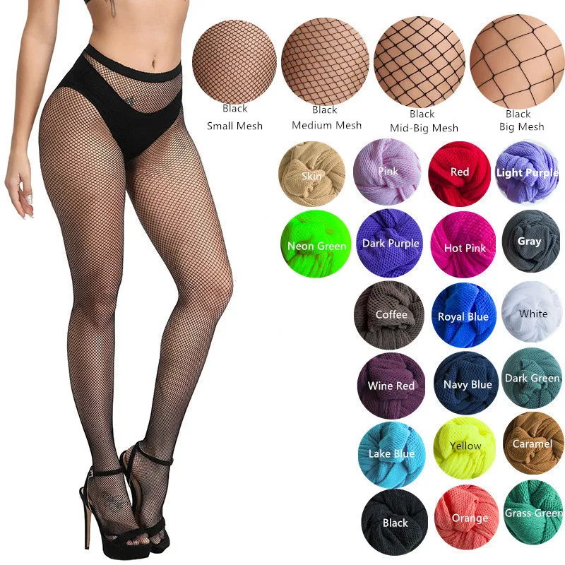 Sexy Women Fishnet Stocking Multicolor Plus Size Pantyhose Colored Small Middle Big Mesh Fish Nets Tight Anti Hook Nylon Panty