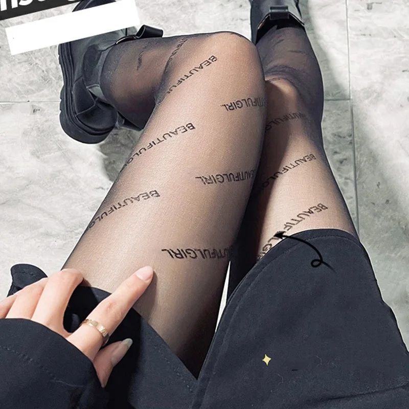 Sexy Women's Stockings Print Fashion High Elasticity Nylon Pantyhose Transparent Print Stocking Tights Letter Stockings CTW031