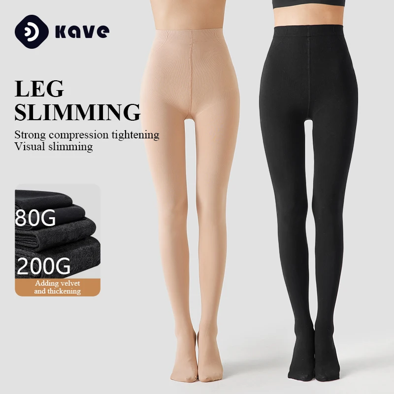 Kave 80-200G Basic Stocking Women Autumn Winter Fleece Warm Tights High Waist Tummy Control Support Stockings Black Leggings