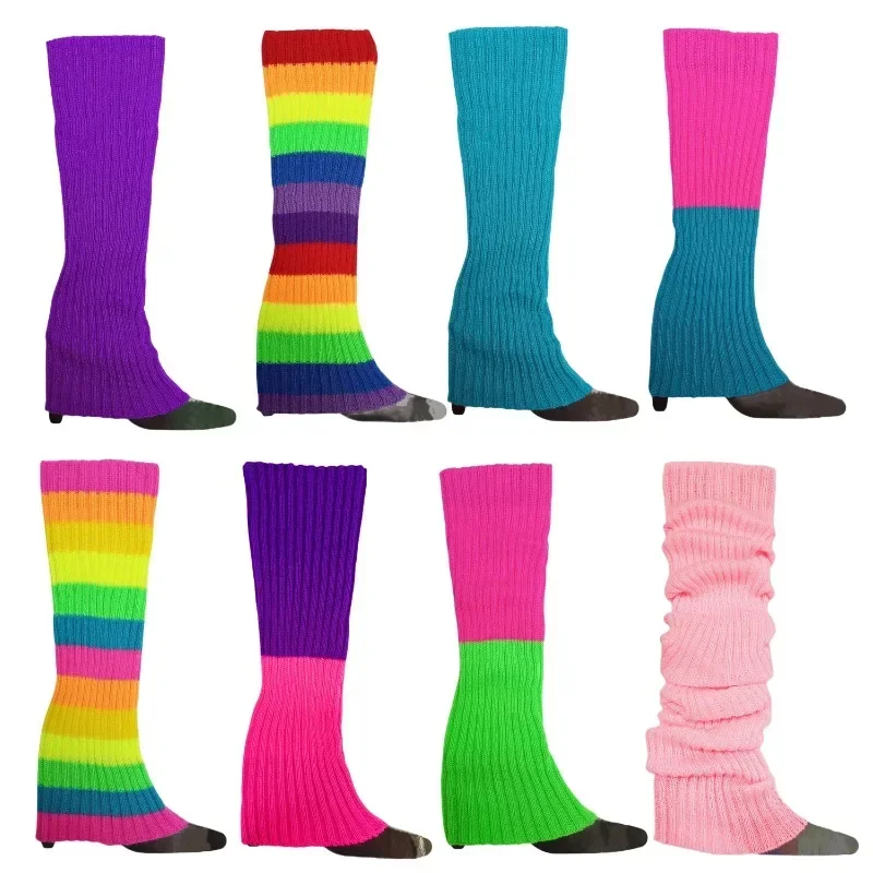 Women Halloween 80s Neon Colored Knit Leg Warmers Ribbed Bright Footless Sock Punk Black Knee High Gothic Hip-hop Rock Sock 2025  Read more