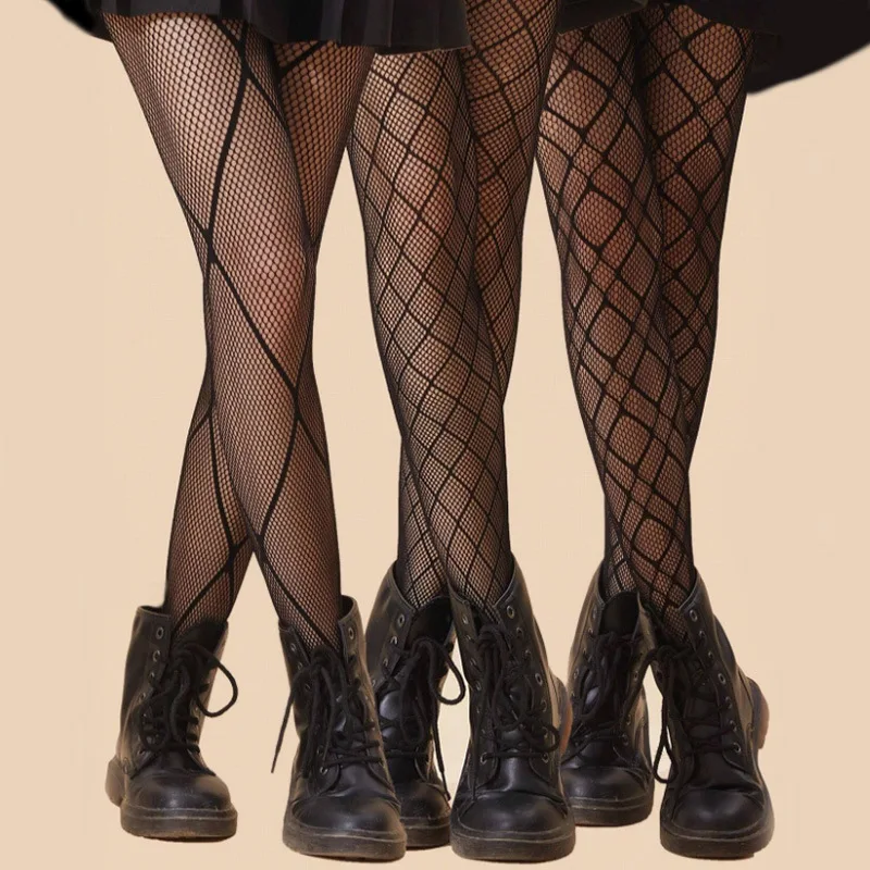 Mesh Fishnet Stockings Women Tights Lingerie Sexy Lace Floral Thigh High Stockings Pantyhose JK Lolita Stocking Tights Pantyhose