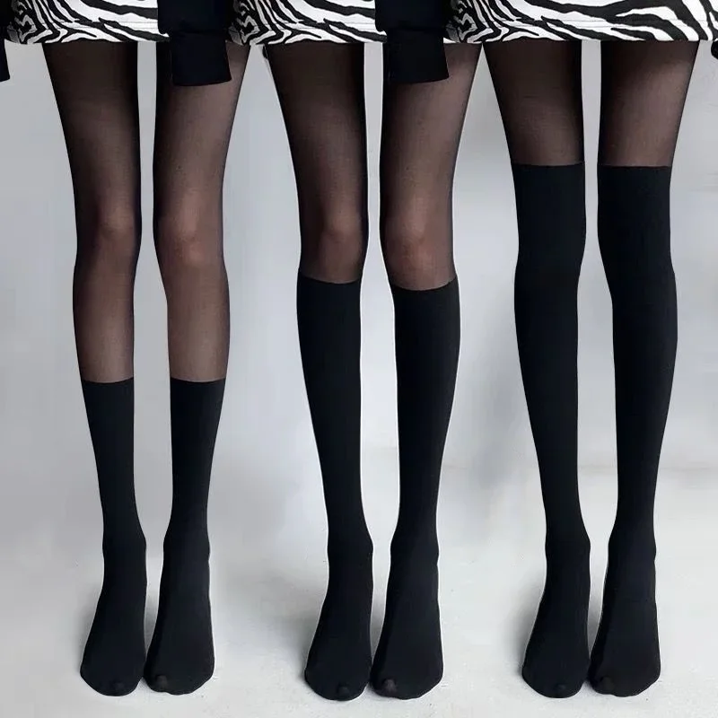 Sexy Women Tights Pantyhose Patchwork Sheer Black Thigh High Stockings Tights Women Female Hosidery Over Knee Stripe Pantyhose
