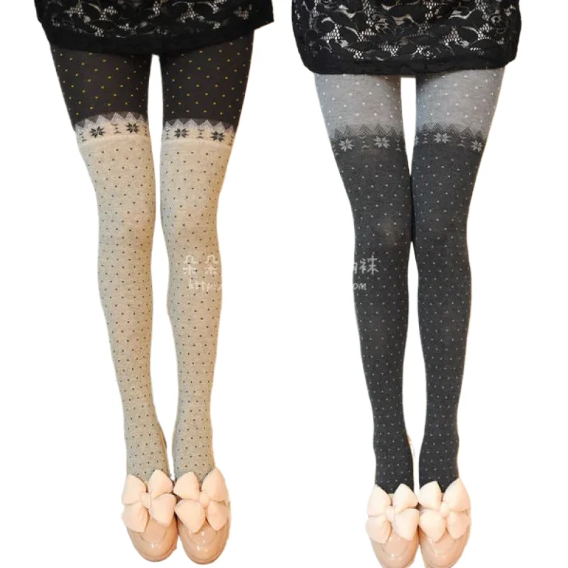 Japanese Style Snowflake Tights Woman Beige Brown Gray Medias Socks Hot Beautiful Legs Pantyhose Retro Thin Stockings.  Read more