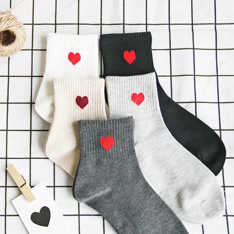 Women's Socks Women Cute Love Heart Print Cotton Harajuku Socks White Black Girl Female Sock Dropshipping calcetines Wholesale  Read more