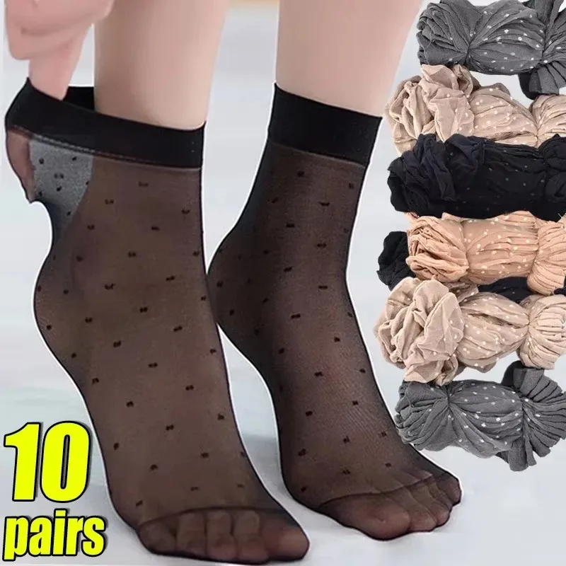 10-30pairs Black Dot Transparent Socks Ultra-thin Elastic Women Crystal Silk Socks Nylon Fashion Ladies Summer Short Ankle Socks