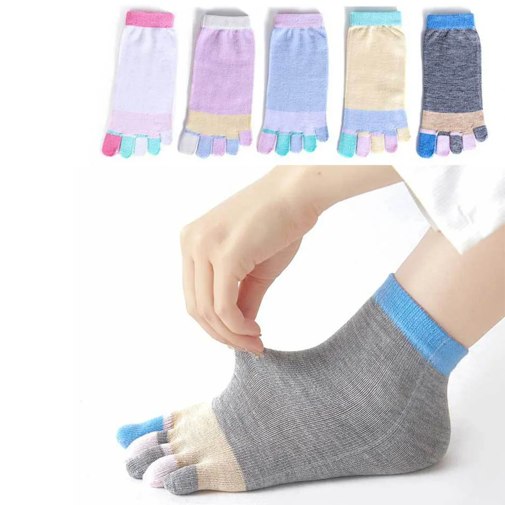 New Colorful Five Fingers Short Socks For Women Soft Cotton Elastic Split Toe Socks Sweet Ankle Socks Casual Sports 5 Toe Socks