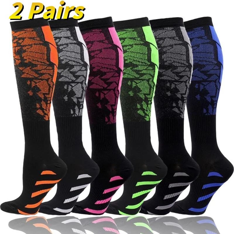 2 pairs of men and women fashionable printed compression socks for medical diabetes varicose stockings for running and cycling