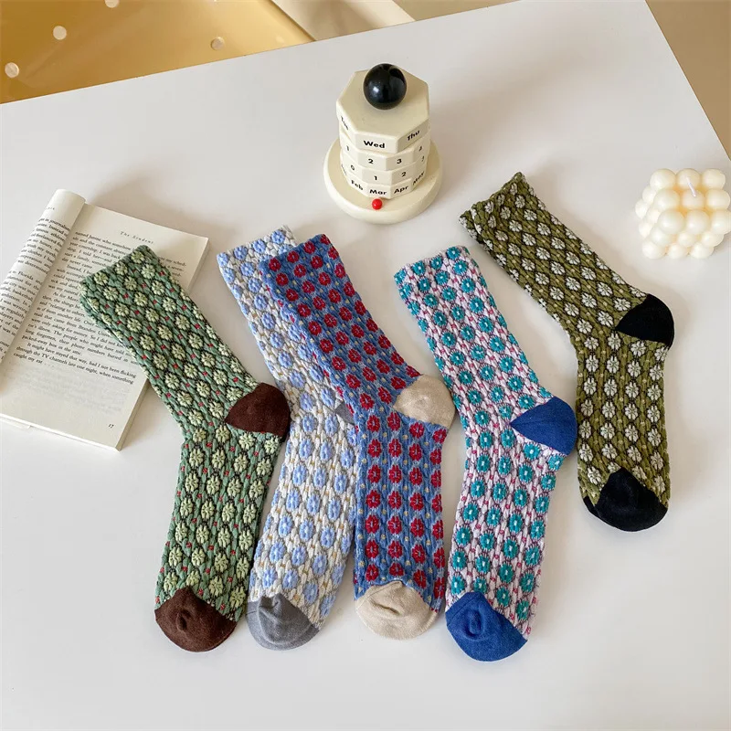 2025 New Women Socks Ethnic Embossment Floral Harajuku Vintage Crew Socks Korean Japanese Fashion Girls Cotton Loose Long Socks  Read more
