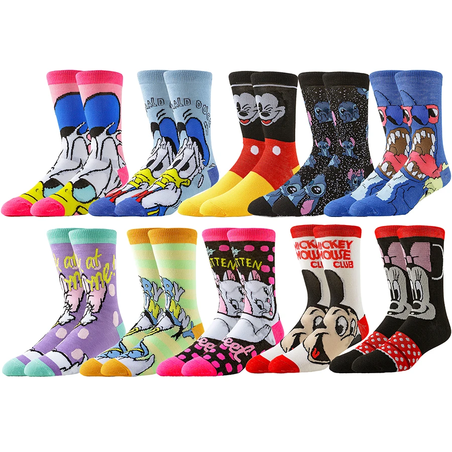 Potdemiel Disney Fashionable Hip Hop Street Style Cartoon Anime Socks for Men and Women Casual Crew Socks