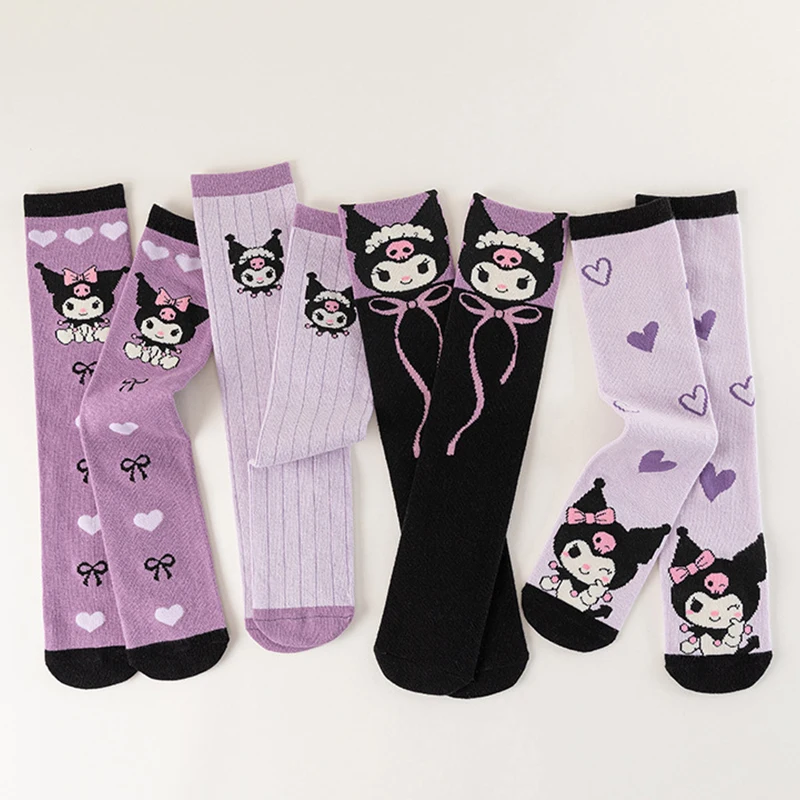 4 Pairs of High-Quality Cartoon Anime Character Kuromi Pattern Women's Straight Socks Comfortable and Soft Casual Women's Socks