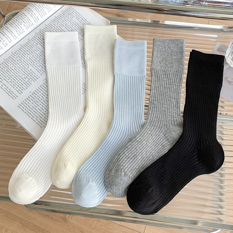 Women's Socks Long New Solid Color Simple Ladies Loose Socks CasualJapanese Fashion Striped Basic Crew Socks Breathable