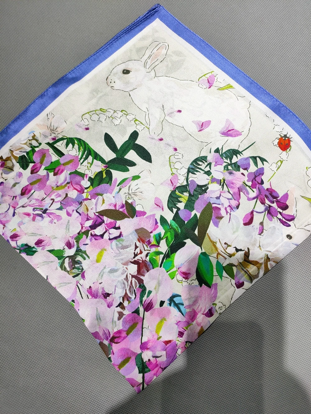 BYSIFA Blue White 100% Mulberry Silk Scarf Women Fashion Rabbts Deisgn Square Scarves Hijabs Fall Winter Brand Accessories