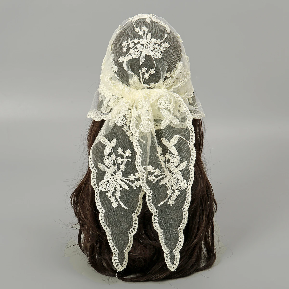 ZB91 Muslim Women for Infinity Floral Lace Veil Scarf Wedding Bride Chapel for Head Covering Wrap Style Latin Mass Mantilla for