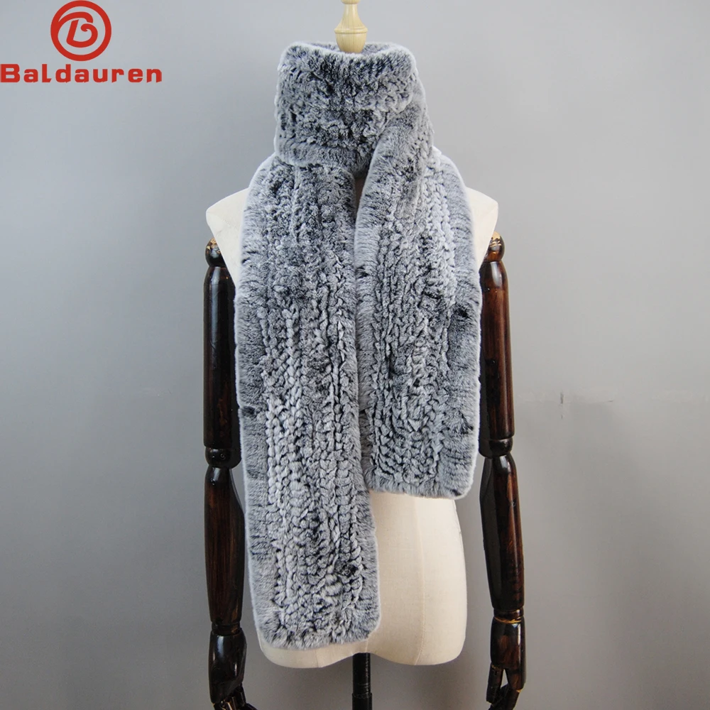 2025 Fashion Long Style Women 100% Natural Rex Rabbit Fur Scarves Winter Warm Lady Real Rex Rabbit Fur Muffler Knitted Fur Scarf