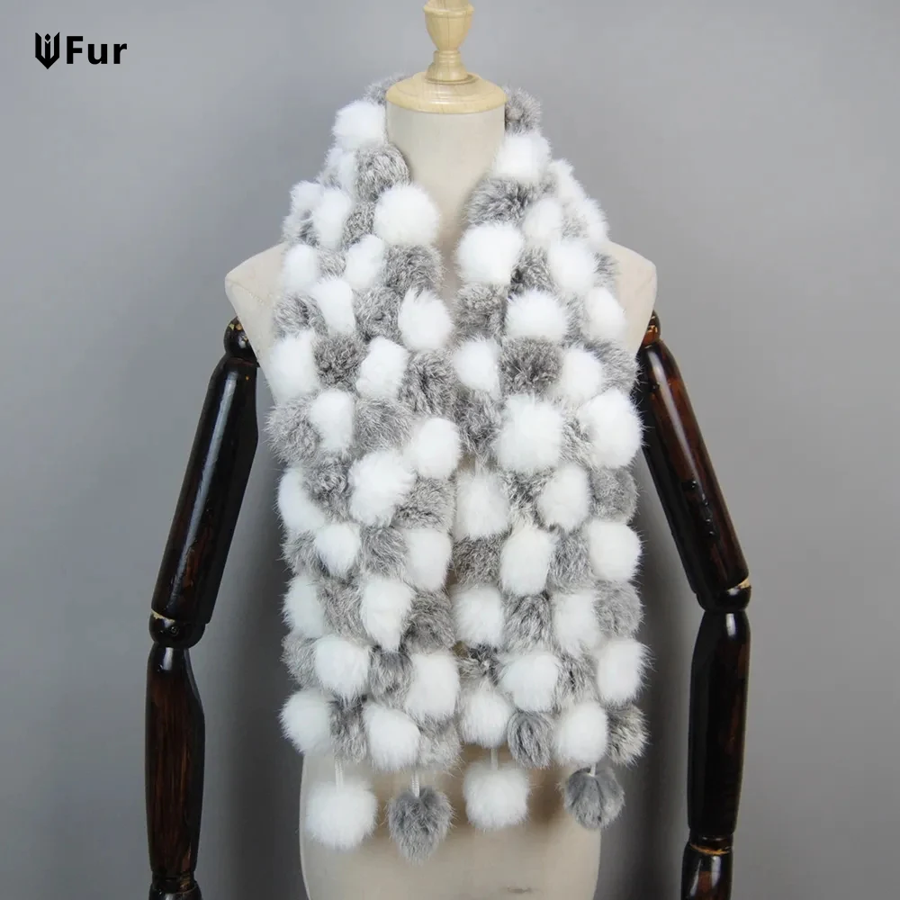 Women Winter Warm Real Rabbit Fur Scarf Hot Sale Natural Rabbit Fur Muffler 2025 Lady 100% Genuine Fur Scarves Wholesale Retail
