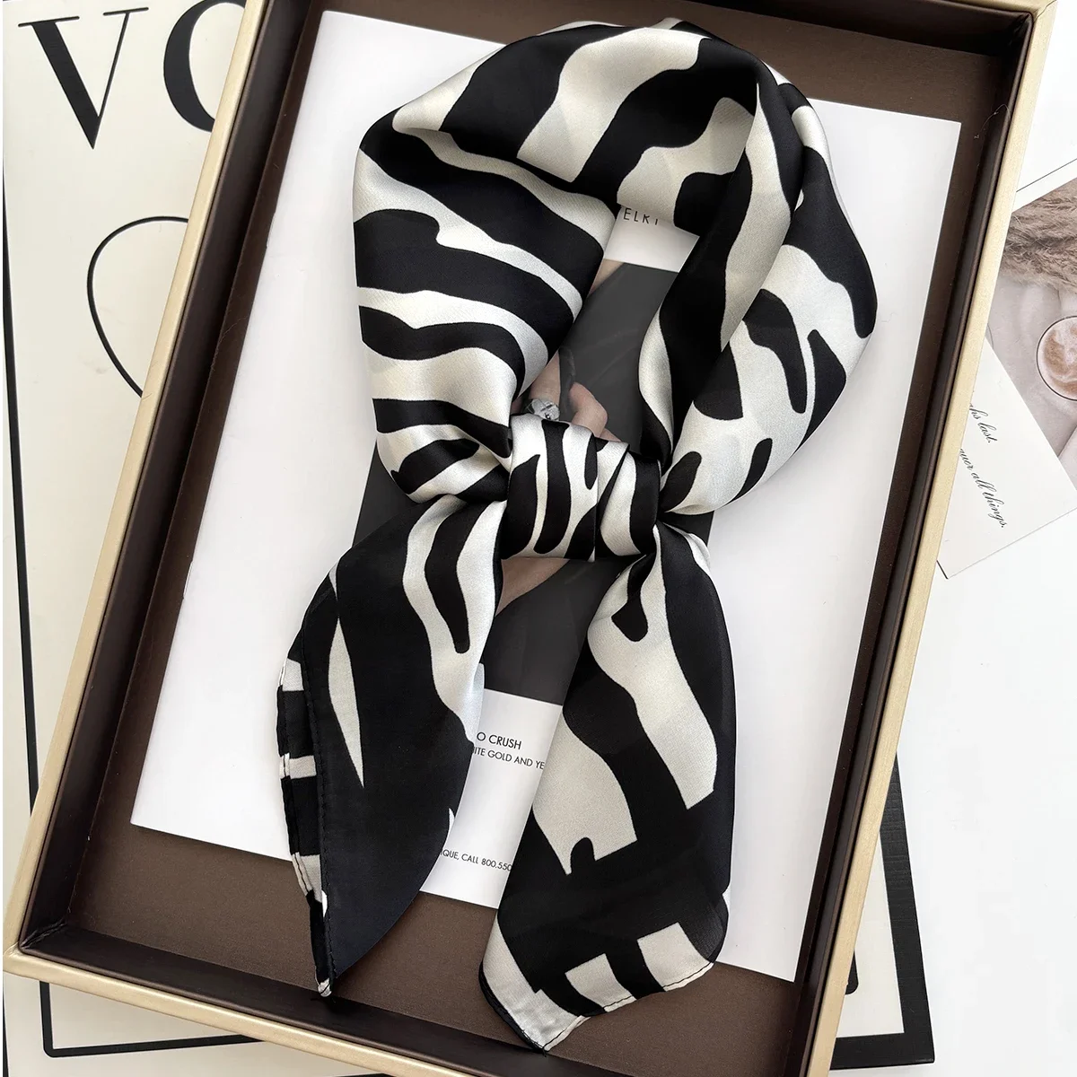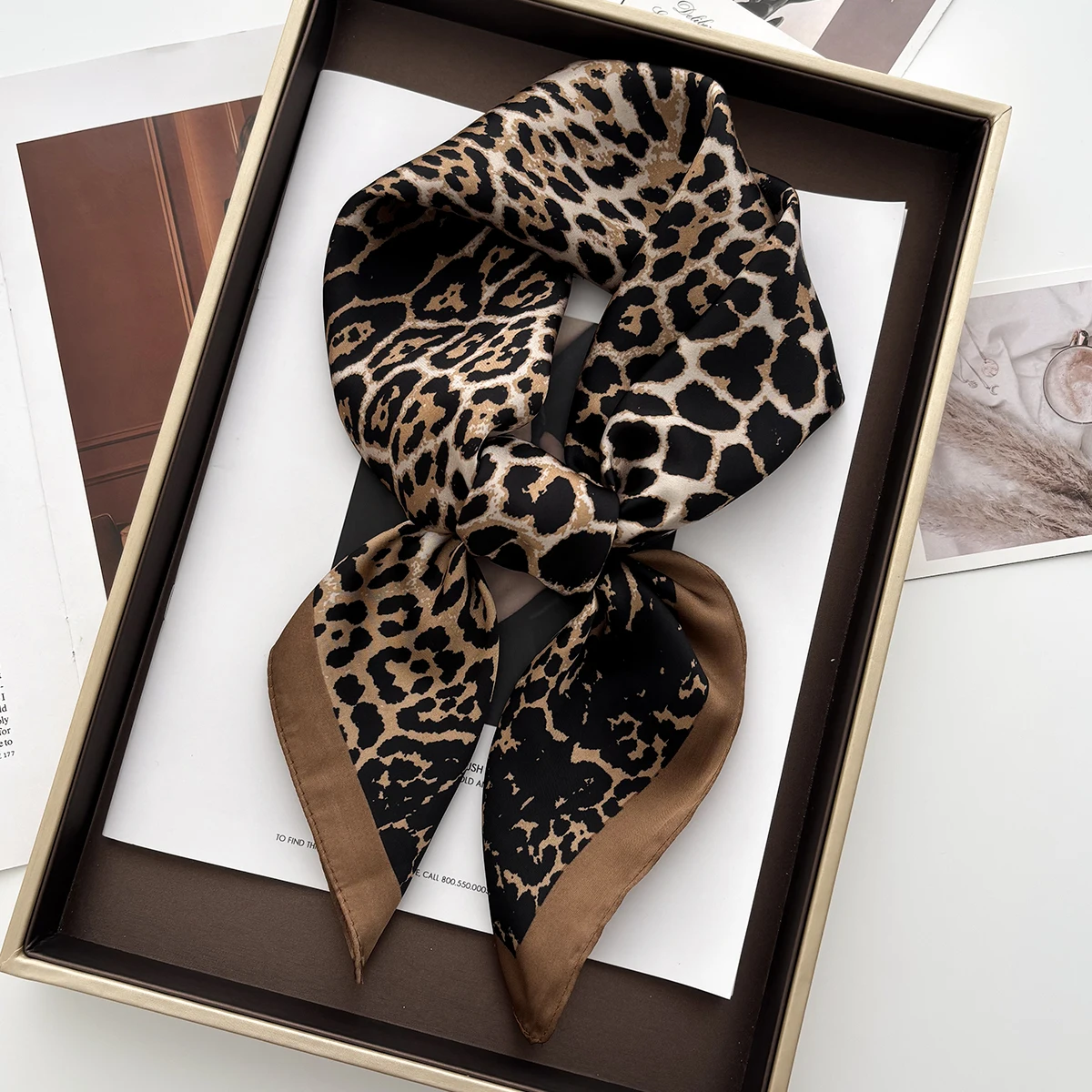 Luxury Leopard Print Satin Silk Square Scarf for Women Shawl Hijab Neckerchief Female Hair Headband Fashion Wrap Bandana New