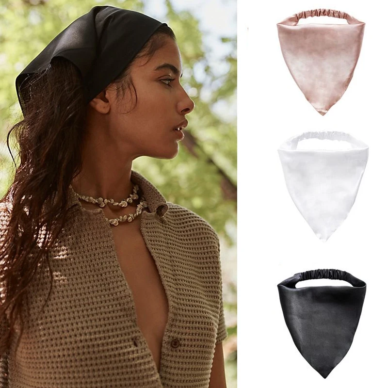 Women Solid Hair Scarf Scrunchies Vintage Triangle Bandana Hairband Headband Elastic Hair Bands Headwrap Hair Accessories