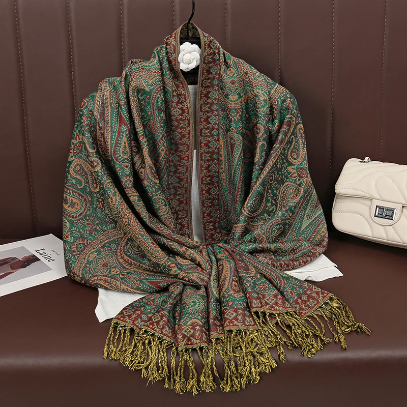 Luxury Bohemia Styles Pashmina Scarf Shawl Wrap Paisley Jacquard Flowers Tassels Neckerchief For Women Muslim Hijab