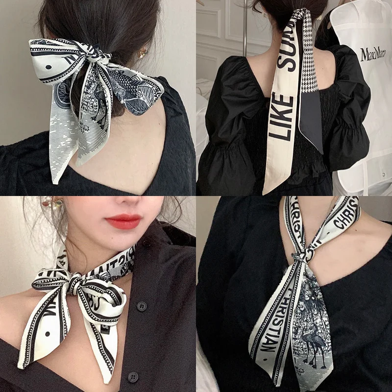 Small Silk Scarf For Women 2021 New Print Handle Bag Ribbons Brand Fashion Head Scarf Small Long Skinny Scarves Wholesale