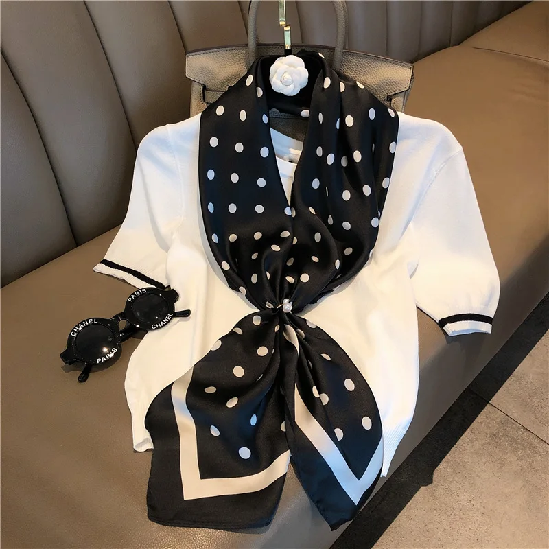 Ladies Large Size Classical Soft Shawl Wrap Hijab Women Erchape Bandana Foulard Kerchief 90x90cm Dot Printed Square Silk Scarf