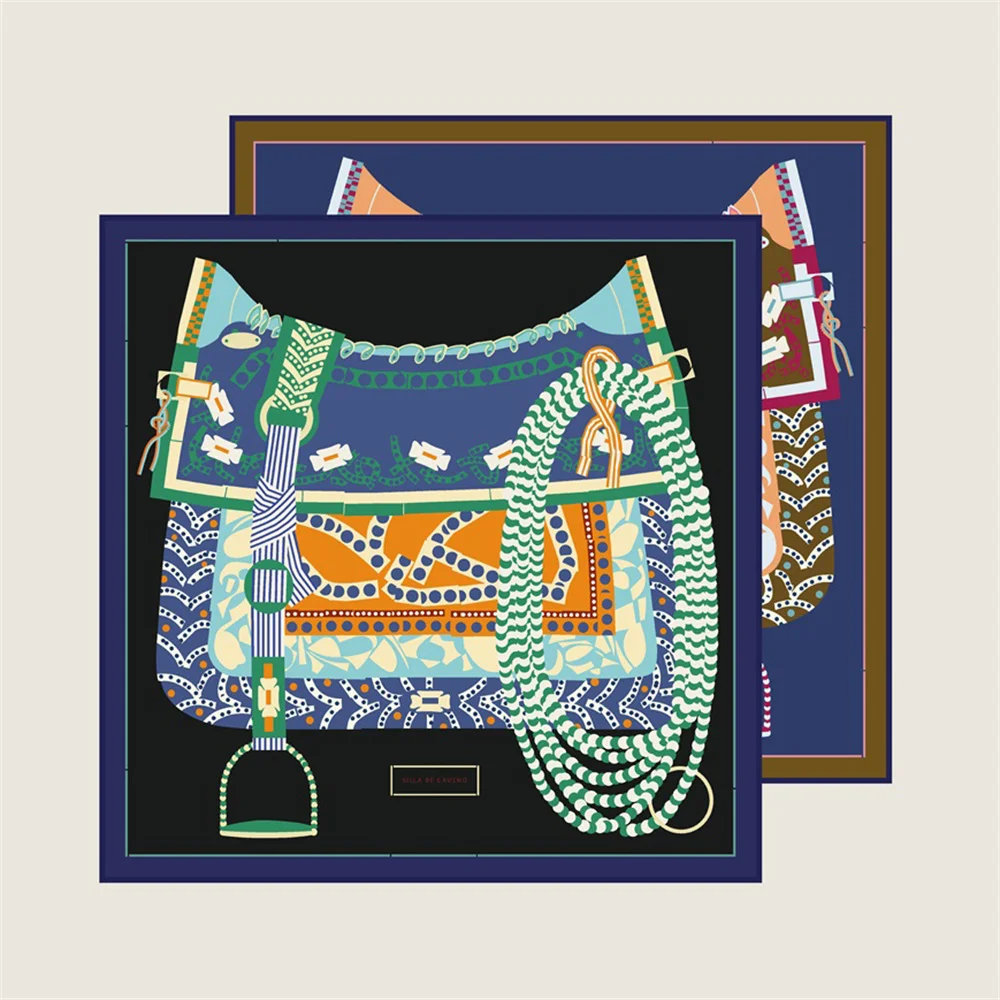 POBING Manual Hand Rolled Twill Silk Scarf Women Saddle Double Print Square Scarves Wraps Echarpes Foulards Femme Hijab 90CM