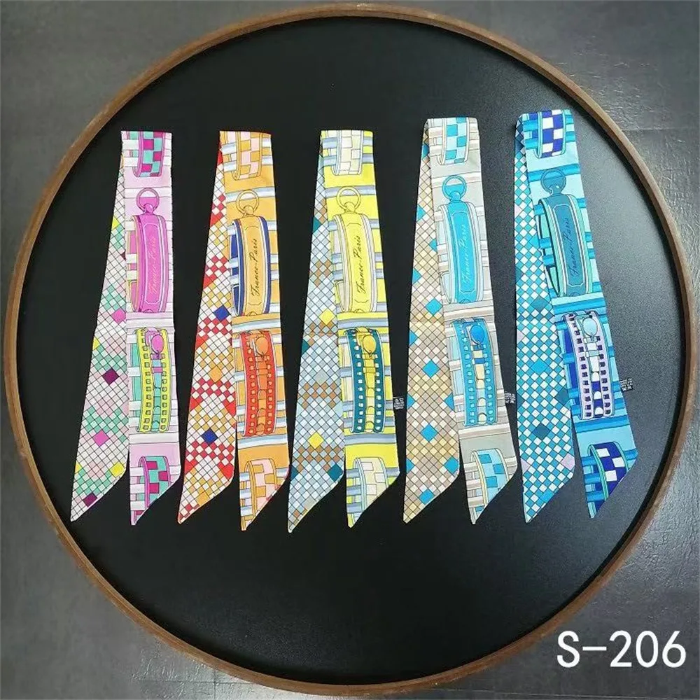 5*90cm Korean New Chain Buckle Decoration Ribbon Small Scarf Women Twill Tied Bag Handle Ribbon Hair Band Souvenir Small Scarf