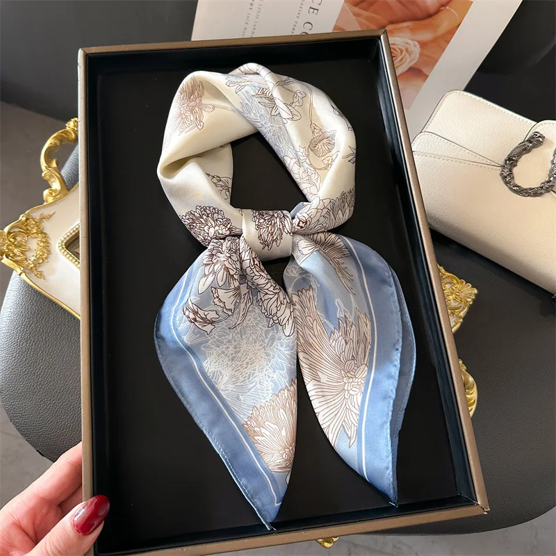 Floral Print 70cm Satin Headkerchief Women Luxury Design Neck Tie Scarf Female Hair Hand Wrist Foulard Shawl Hijab Bandana New
