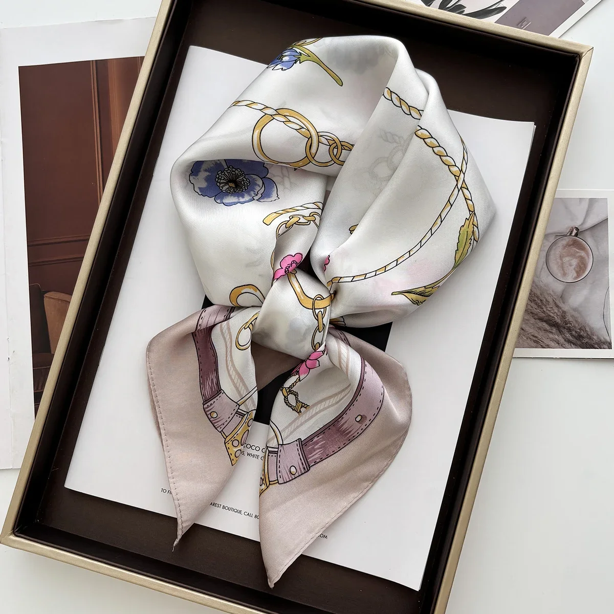 Floral Print 70cm Satin Headkerchief Women Luxury Design Neck Tie Scarf Female Hair Hand Wrist Foulard Shawl Hijab Bandana New  Read more