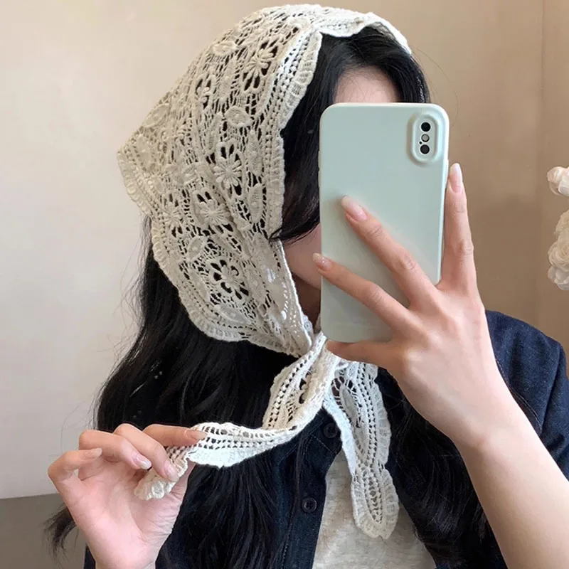 New Crochet Flower Triangle Headband Women Lolita Autumn Waist Belt Korean Knitted Flower Bandana Hair Scarf Headwarp Accessory