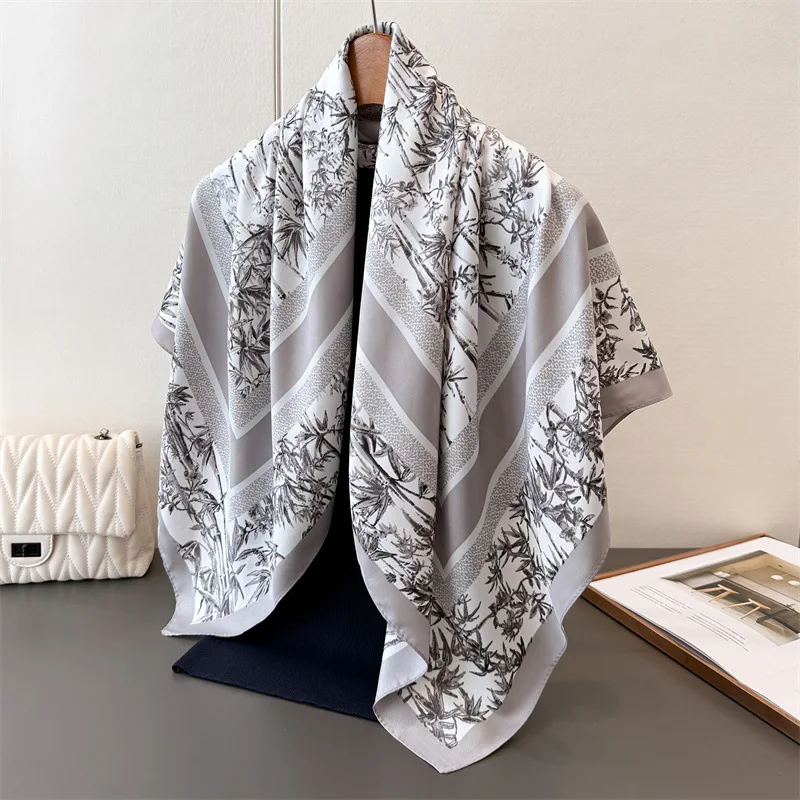 New 90cm Silk Scarf Flower Printing Women's Twill Square Travel Decoration Shawl Sunscreen Fashion and Elegance Spring Autumn