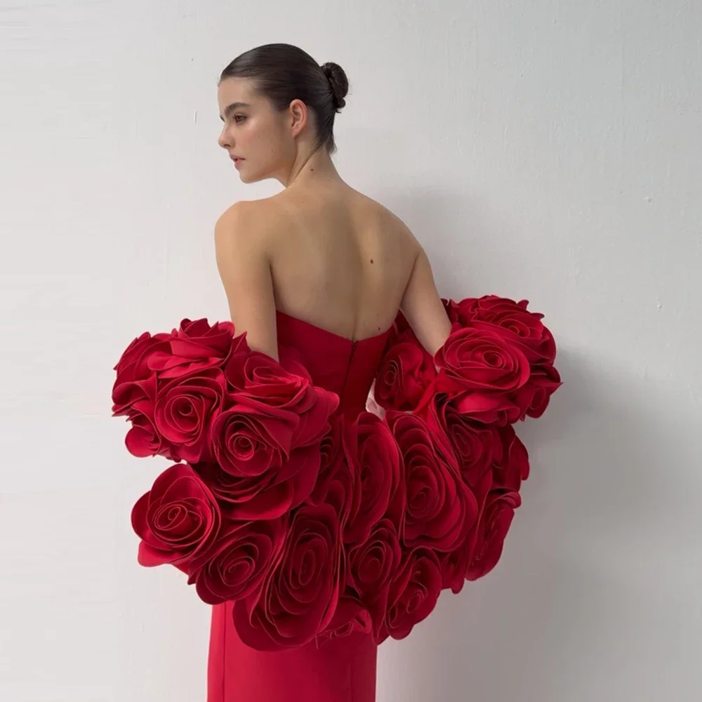 3D Rose Flowers Bridal Wraps New Couture Detachable Cape Shawl Clock Photoshoot Custom Red Cape Women Blouse Floral Wedding Cape
