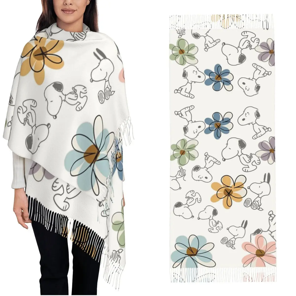 Peanuts Snoopy Flowers Shawls Wraps for Women Winter Large Soft Scarf Cartoon Cute Pashmina Tassel Scarves