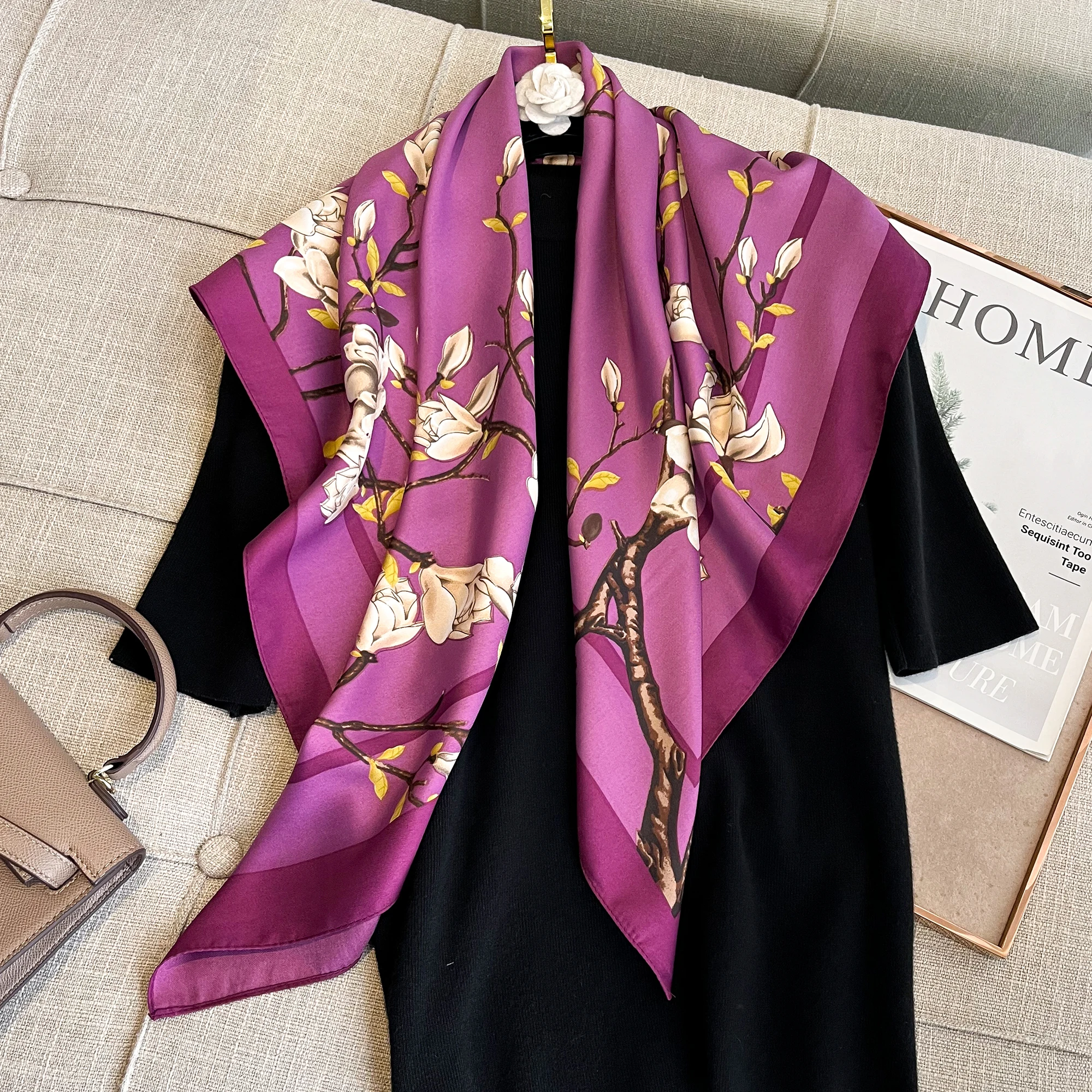 New Luxury Brand Silk Scarf Women Large Shawls Hijab Design FLoral art imitation silk sunscreen outdoor Travel beach towel