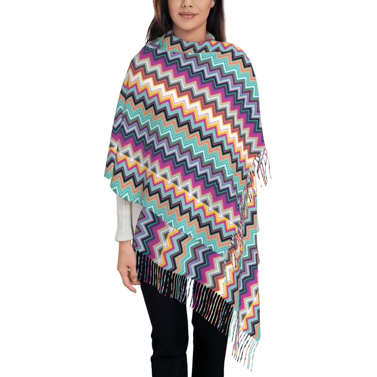 Color Home Zig Zag Zigzag Art Scarf Wrap for Women Long Winter Warm Tassel Shawl Unisex Bohemian Modern Geometric Scarves