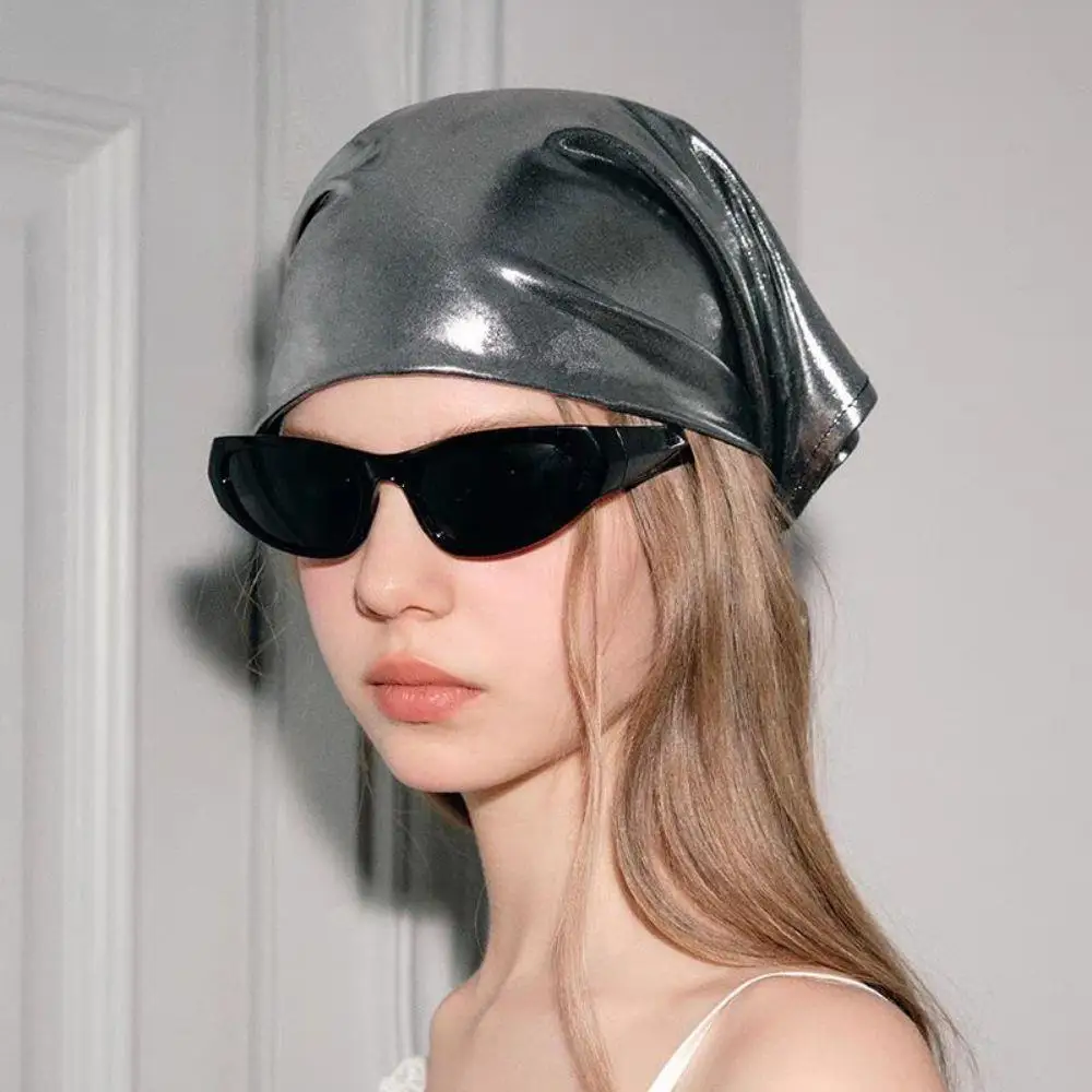 Liquid Silver Leopard Print Scarf Original Design Spicy Girls Sunscreen Headscarf Hat Y2K Hair Shawl Wrap Hip-Hop Vintage Women