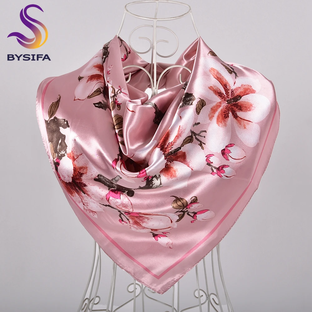 BYSIFA 2020 Pink Ladies Square Scarves Hijabs Printed Fashion Elegant Women Satin Silk Scarf Headscarf Luxury Sweet Neck Scarf  Read more