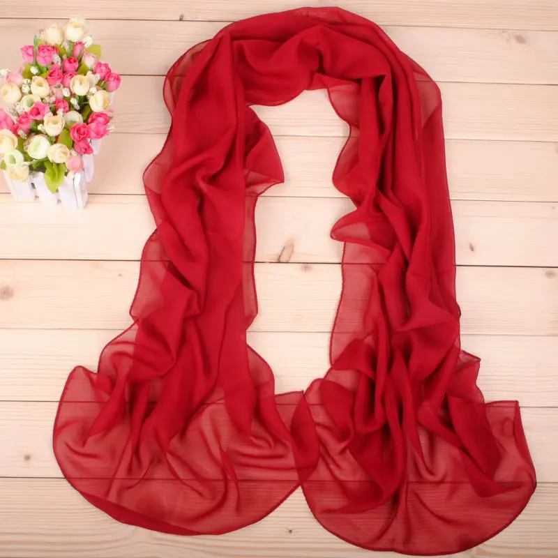 New Fashion Temperament Pure Monochrome Women's Long Chiffon Scarves Wholesale Yiwu Plain Pure Color Small Scarves