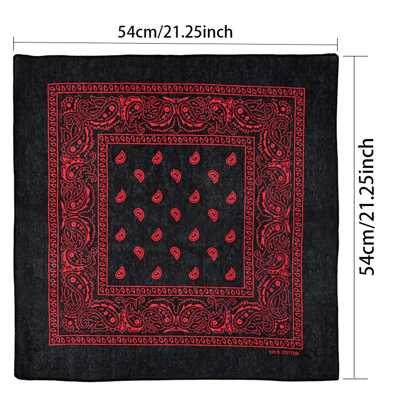 Black Popular Hip Hop Printed Cashew Flower Bandana Men Women Outdoor Headbands Square Scarves Boys/Girls Hair Accessories Gift