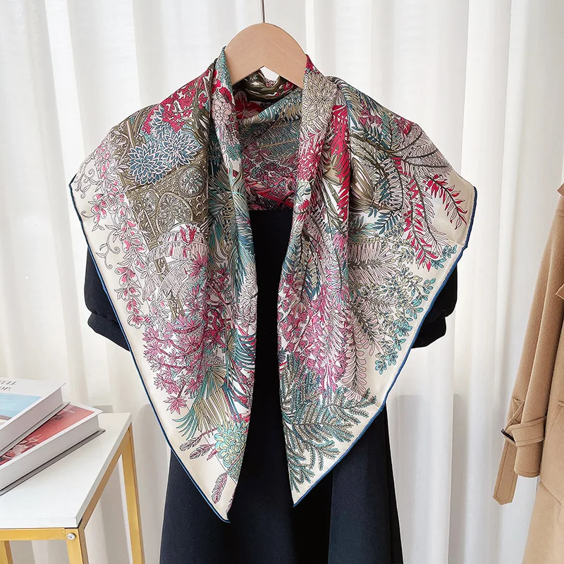 Manual Hand Rolled Twill Silk Scarf Women Animals Print Square Scarves Wraps Echarpes Curled Foulard Femme Bandana Hijabs 90CM