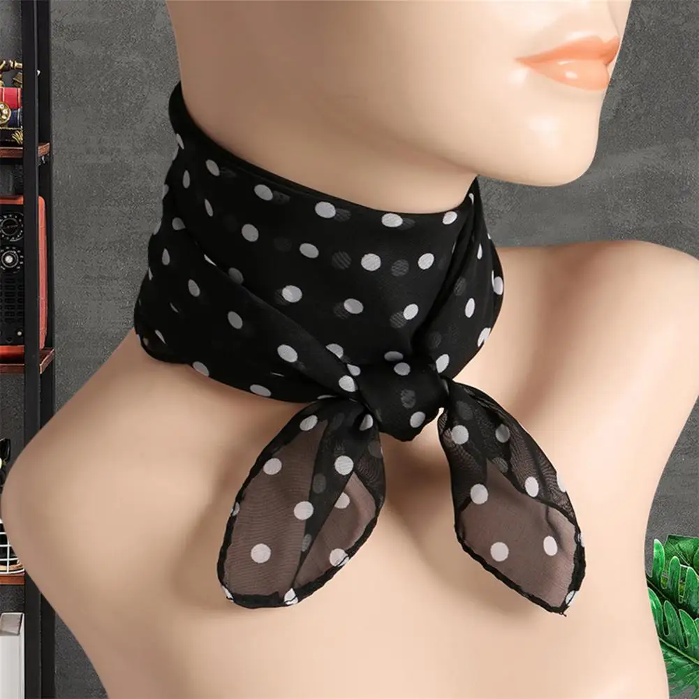 Women Scarf Dot Print Thin Neckerchief Breathable Neck Decoration Chiffon Collar Scarf Lady Head Neck Square Scarf