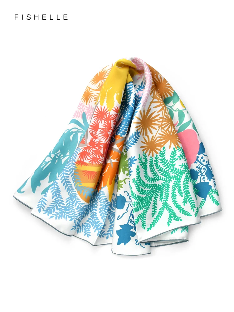 Fresh colorful tropical forest printed natural silk twill women scarf real silk scarves ladies spring autumn shawl luxury gifts