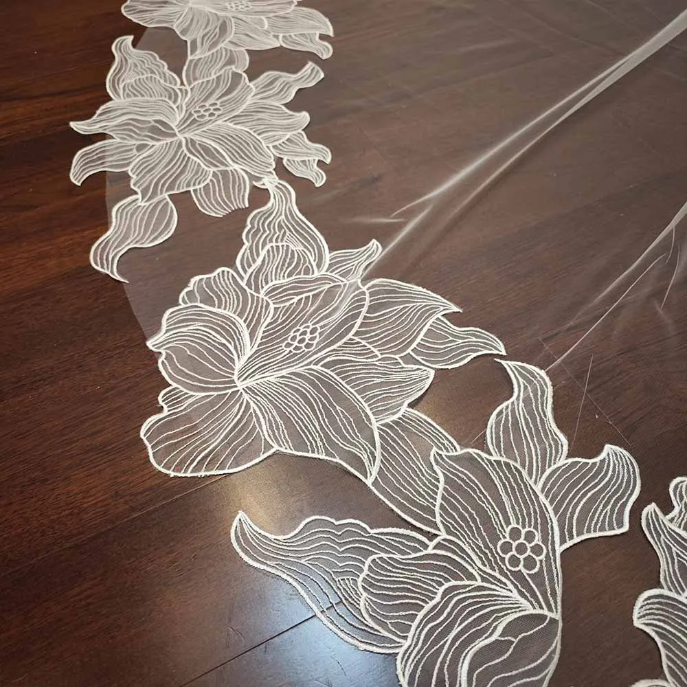 Romantic Floral Lace Wedding Veil with Comb Single Layer 3 Meters Long Bridal Veil Ivory Head Veil Wedding Accessories