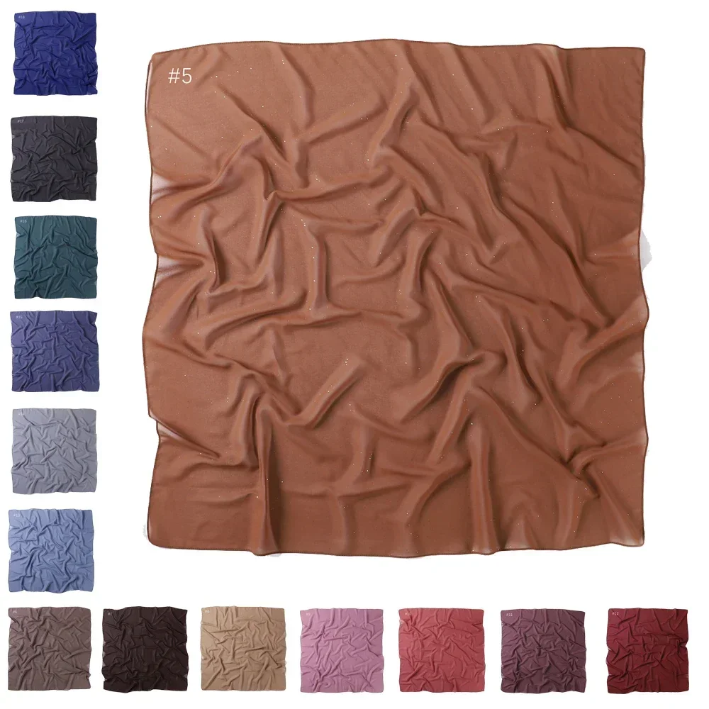 90*90cm Square Chiffon Hijab Scarf Women Solid Color Muslim Soft Head Scarf Islamic Shawls and Wraps Headband Musulman Scarves