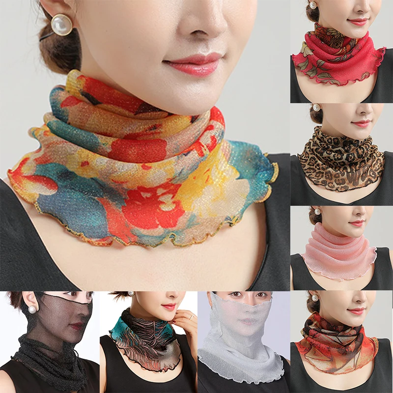 Spring Summer Chiffon Neck Collar Scarf Women Head Thin Sunscreen Variety Small Silk Anti-Uv Scarf Mask Multi-Function Scarf