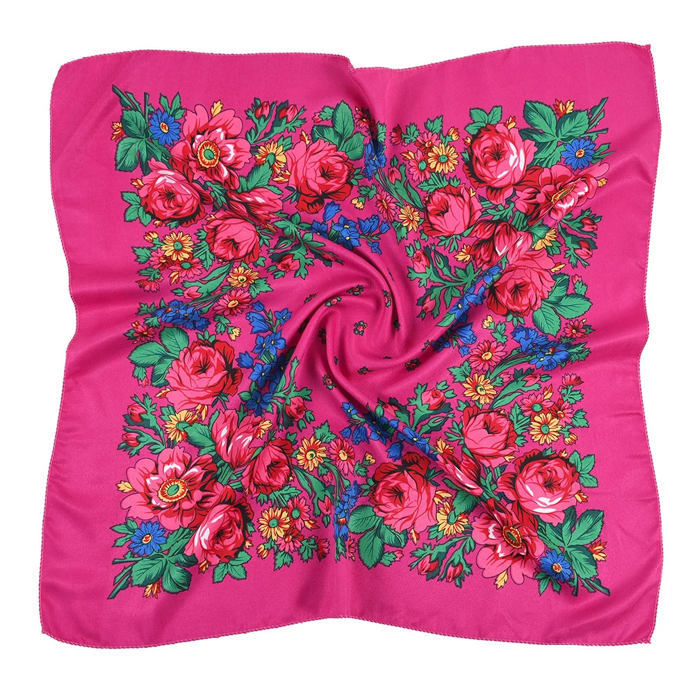 70*70cm Luxury Flowers Square Russian Scarf Women Floral Printed Shawl Female Bandana Head Wrap Headband Scarves Handkerchief